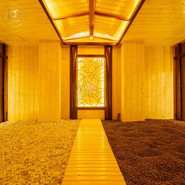 Phòng xông hơi Hoàng Thổ được bao bọc bằng các viên đất sét vàng có chất lượng tốt nhất - Cường Minh thiết kế và thi công phòng xông hơi chuyên nghiệp Hải Phòng
